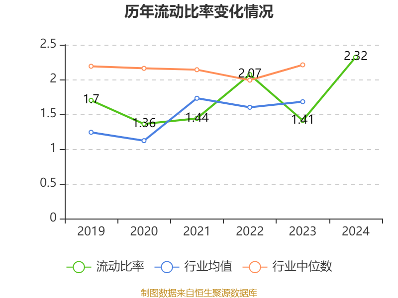 2024年,公司流动比率为2.32,速动比率为1.29。
