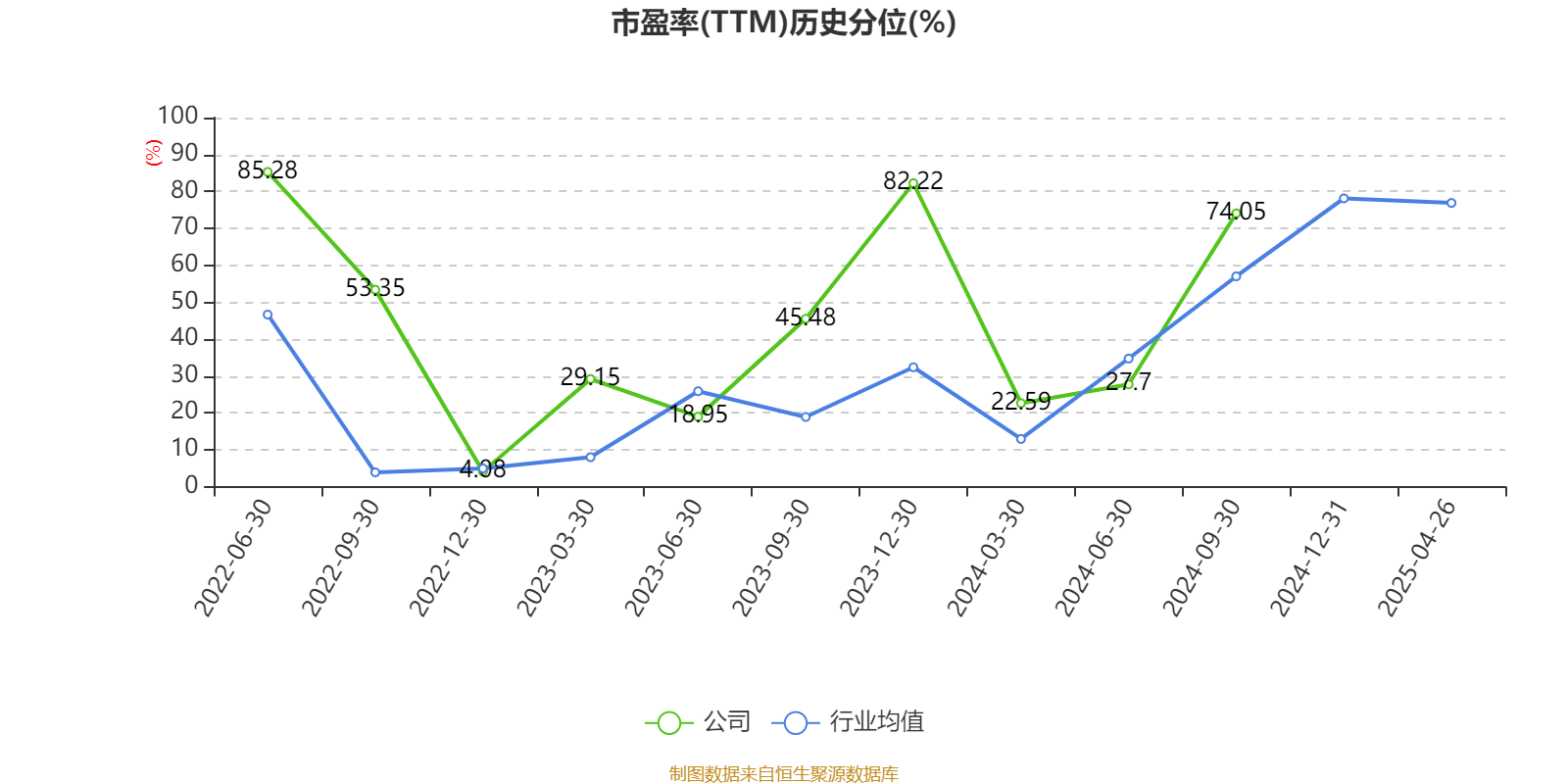 市盈率、市净率为负时,不显示当期分位数,会导致折线图中断。