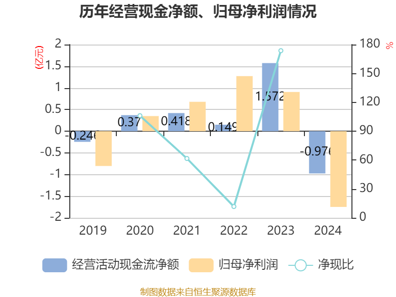 截至2024年,公司经营活动现金流净额为-9762.49万元,同比减少2.55亿元;筹资活动现金流净额2.52亿元,同比增加3.98亿元;投资活动现金流净额-8.78亿元,上年同期为6.16亿元。