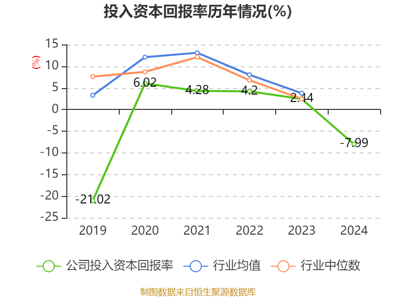 数据显示,2024年公司加权平均净资产收益率为-7.81%,较上年同期下降11.53个百分点。公司2024年投入资本回报率为-7.99%,较上年同期下降10.43个百分点。