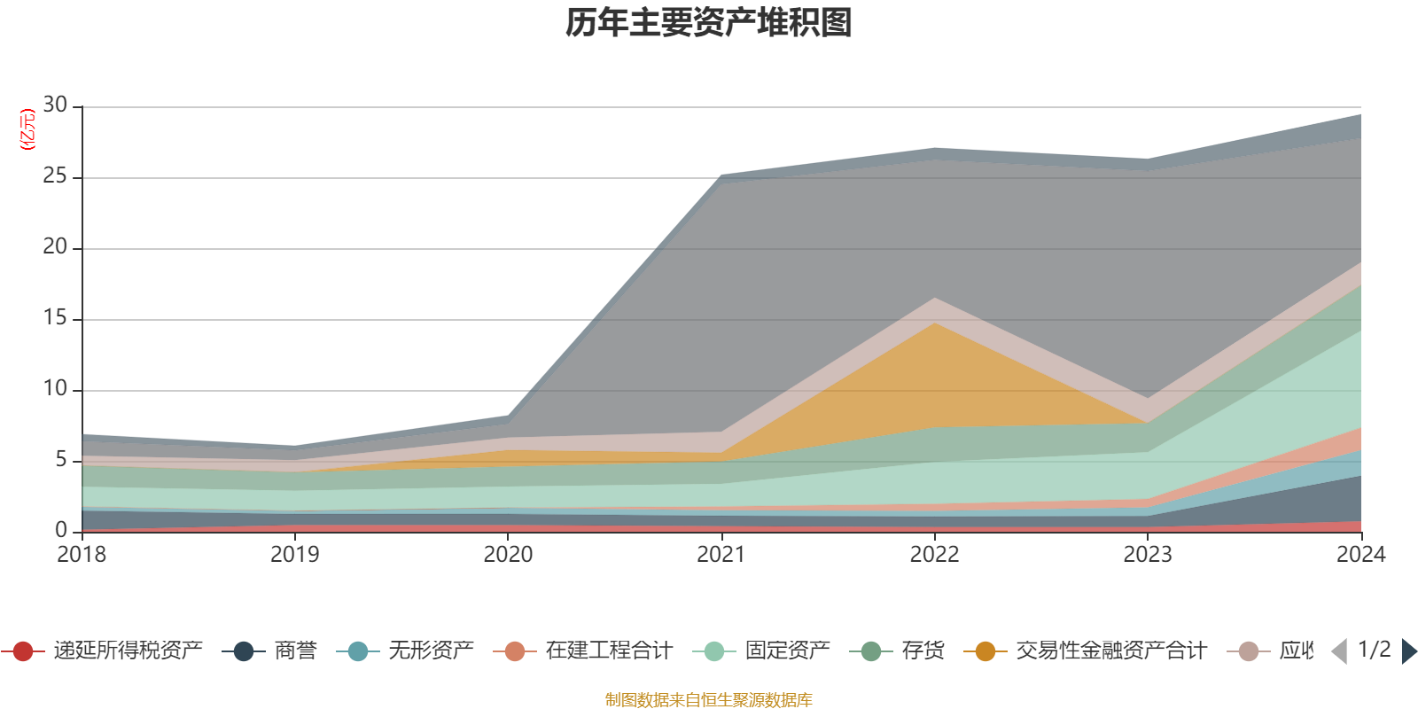 资产重大变化方面,截至2024年末,公司货币资金较上年末减少45.45%,占公司总资产比重下降31.26个百分点;固定资产较上年末增加107.73%,占公司总资产比重上升10.71个百分点;商誉较上年末增加312.21%,占公司总资产比重上升7.93个百分点;无形资产较上年末增加198.3%,占公司总资产比重上升3.85个百分点。