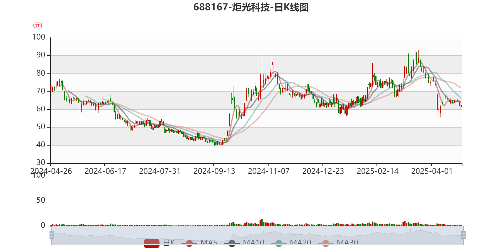 以4月25日收盘价计算,炬光科技目前市盈率(TTM)约为-32.23倍,市净率(LF)约2.67倍,市销率(TTM)约9.09倍。