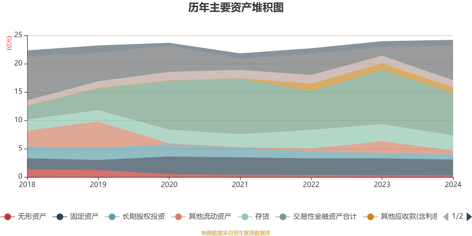 资产重大变化方面,截至2024年末,公司货币资金较上年末增加300.73%,占公司总资产比重上升19.14个百分点;交易性金融资产合计较上年末减少21.97%,占公司总资产比重下降9.1个百分点;其他流动资产较上年末减少68.48%,占公司总资产比重下降5.96个百分点;预付款项较上年末减少90.25%,占公司总资产比重下降1.61个百分点。