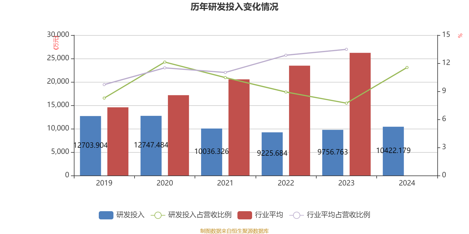 2024年全年,公司研发投入金额为1.04亿元,同比增长6.82%;研发投入占营业收入比例为11.54%,相比上年同期上升3.81个百分点。此外,公司全年研发投入资本化率为0%。