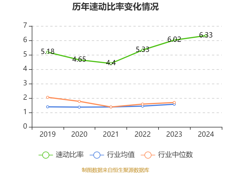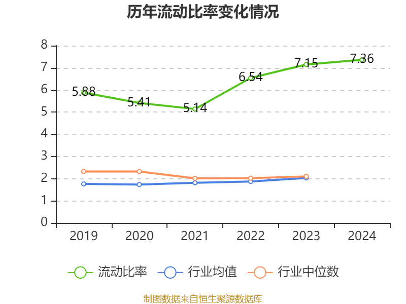 2024年,公司流动比率为7.36,速动比率为6.33。