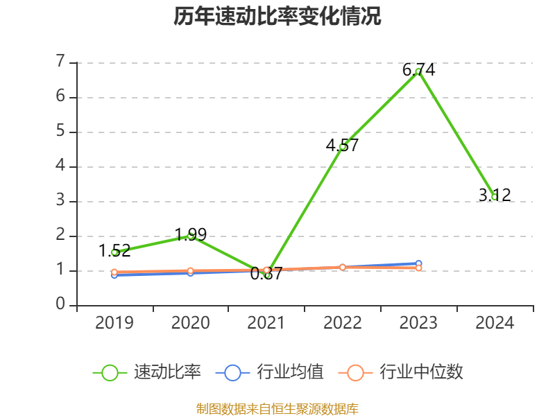 2024年,公司流动比率为6.24,速动比率为3.12。