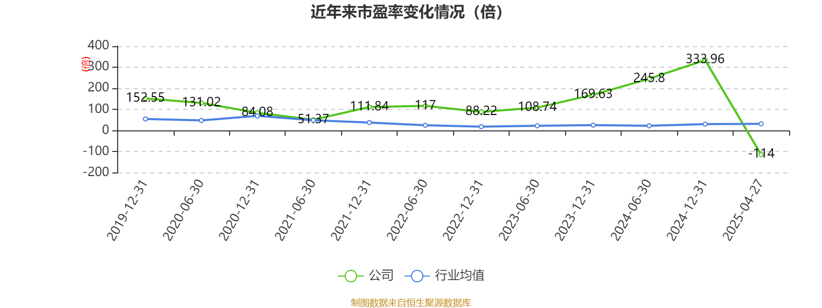 以4月25日收盘价计算,中国稀土目前市盈率(TTM)约为-114倍,市净率(LF)约7.04倍,市销率(TTM)约10.8倍。