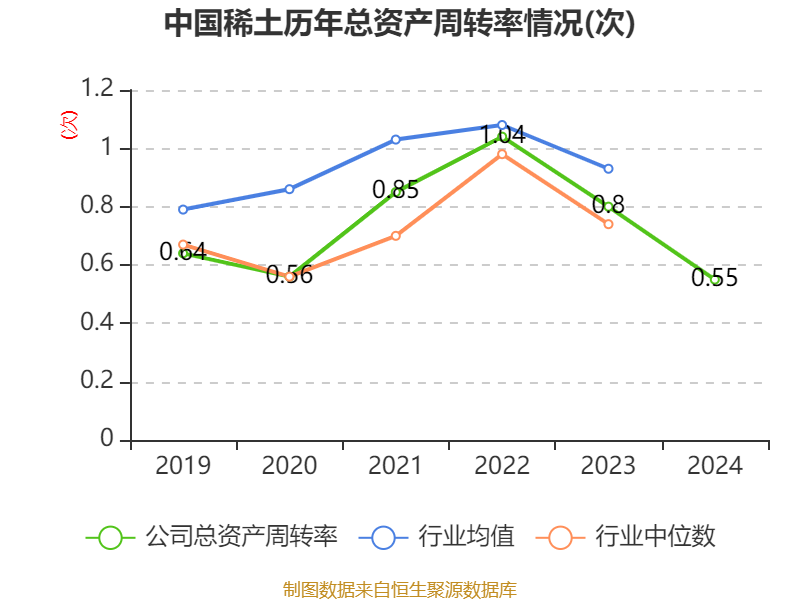 中证智能财讯中国稀土(000831)4月28日披露2024年年度报告。2024年,公司实现营业总收入30.27亿元,同比下降24.09%;归母净利润亏损2.87亿元,上年同期盈利4.18亿元;扣非净利润亏损1.45亿元,上年同期盈利2.47亿元;经营活动产生的现金流量净额为-5.94亿元,上年同期为3.46亿元;报告期内,中国稀土基本每股收益为-0.2704元,加权平均净资产收益率为-6.16%。