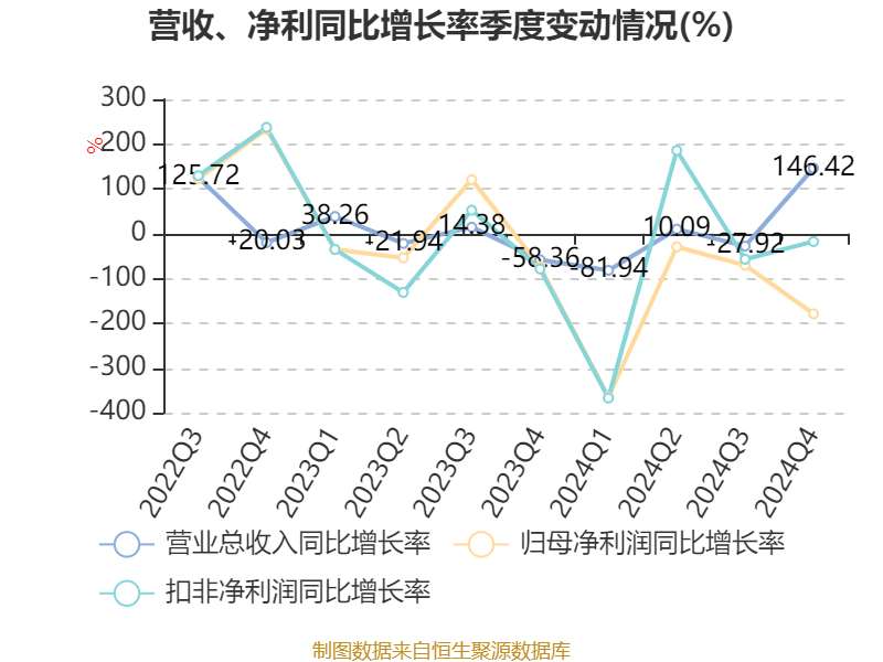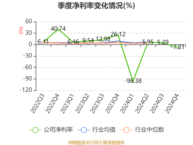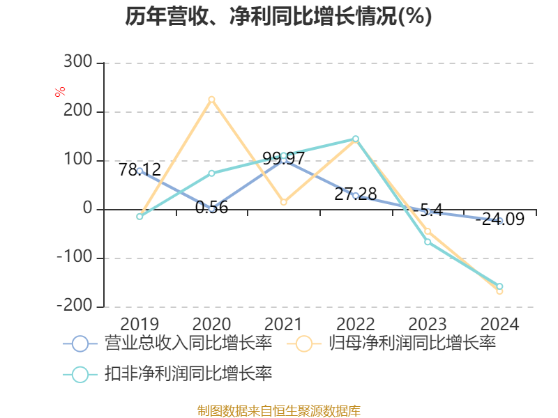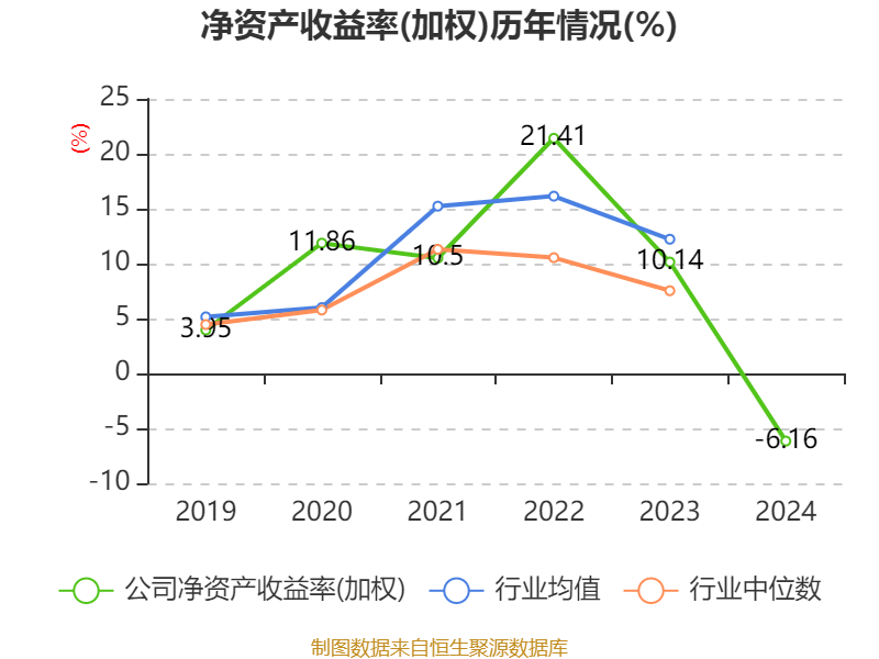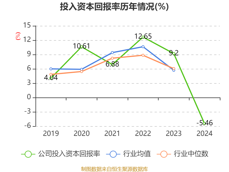 数据显示,2024年公司加权平均净资产收益率为-6.16%,较上年同期下降16.3个百分点。公司2024年投入资本回报率为-5.46%,较上年同期下降14.66个百分点。