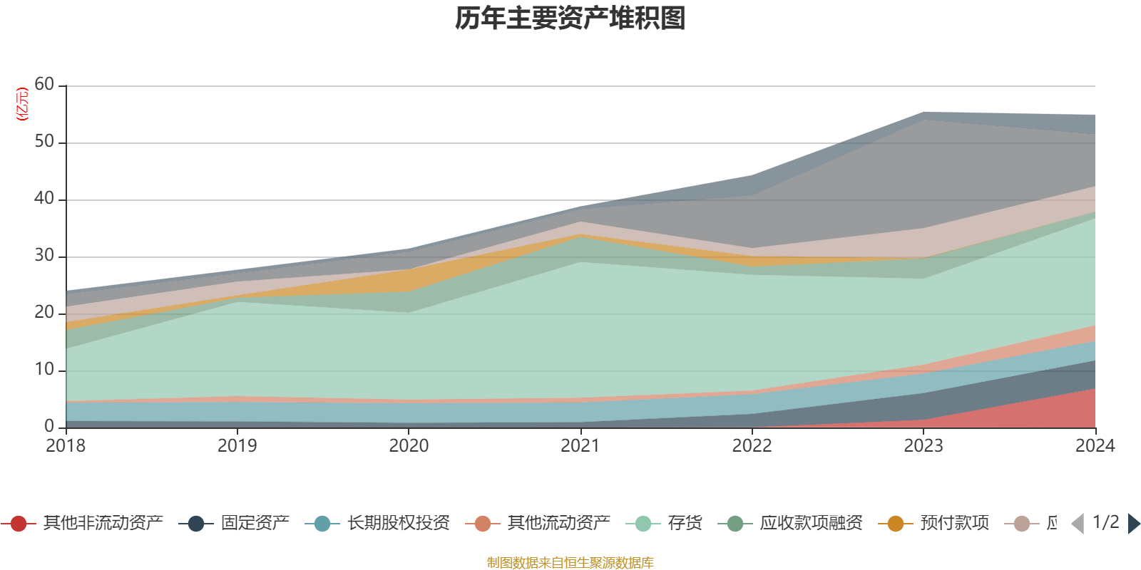 资产重大变化方面,截至2024年末,公司货币资金较上年末减少52.14%,占公司总资产比重下降17.74个百分点;其他非流动资产较上年末增加404.06%,占公司总资产比重上升10个百分点;存货较上年末增加24.59%,占公司总资产比重上升7个百分点;应收款项融资较上年末减少66.8%,占公司总资产比重下降4.3个百分点。
