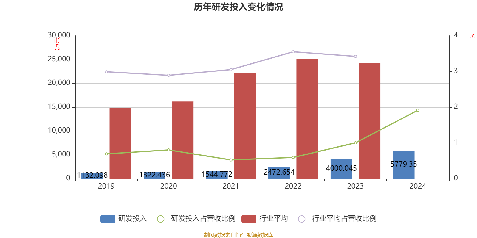 2024年全年,公司研发投入金额为5779.35万元,同比增长44.48%;研发投入占营业收入比例为1.91%,相比上年同期上升0.91个百分点。此外,公司全年研发投入资本化率为0%。