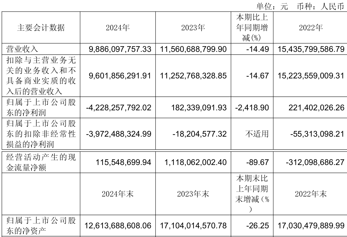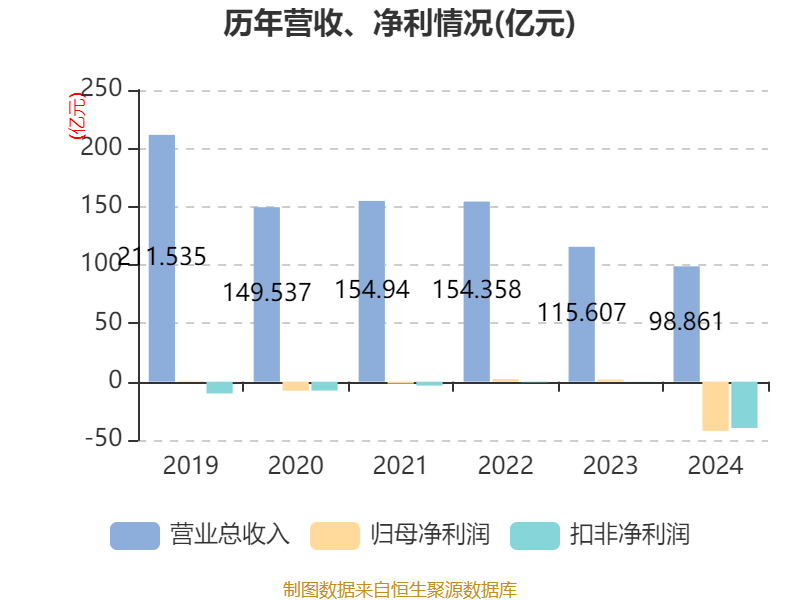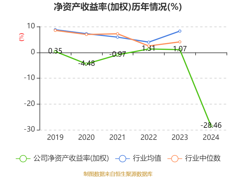 数据显示,2024年公司加权平均净资产收益率为-28.46%,较上年同期下降29.53个百分点。公司2024年投入资本回报率为-26.02%,较上年同期下降26.82个百分点。