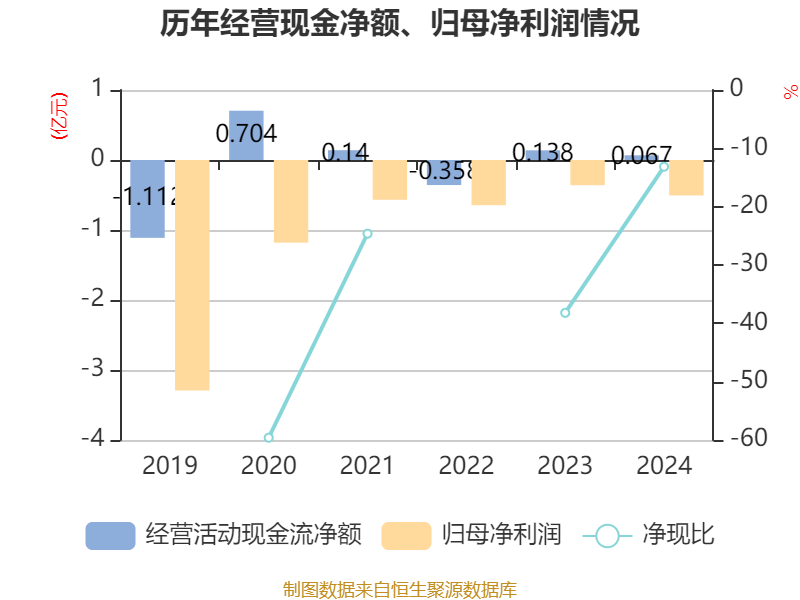 截至2024年,公司经营活动现金流净额为665.83万元,同比下降51.61%;筹资活动现金流净额2.12亿元,同比增加2.24亿元;投资活动现金流净额-2.73亿元,上年同期为-586.1万元。