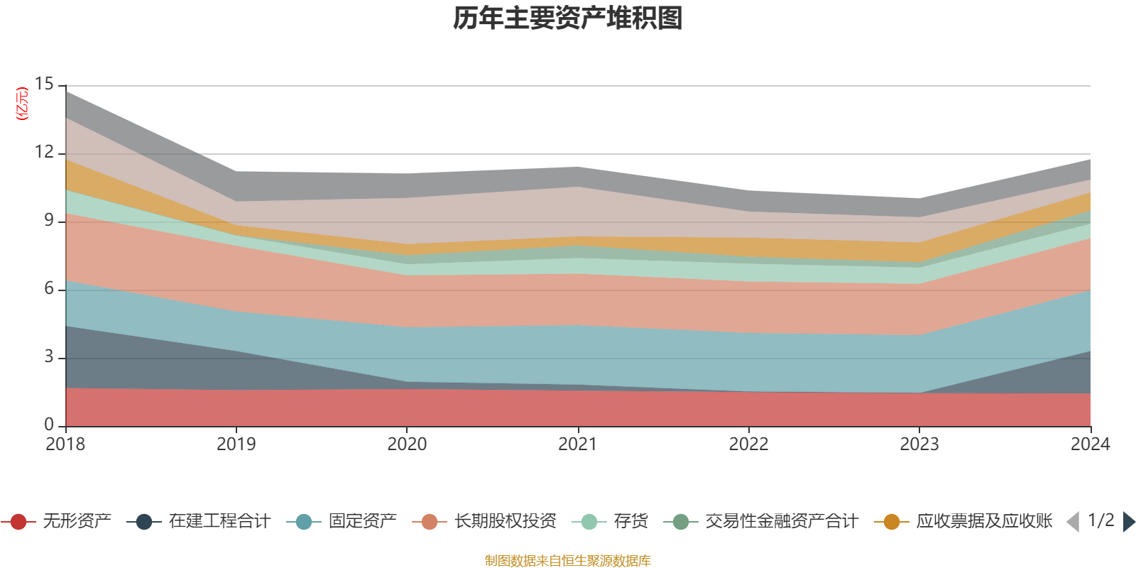 资产重大变化方面,截至2024年末,公司在建工程合计较上年末增加25461.89%,占公司总资产比重上升15.81个百分点;货币资金较上年末减少48.79%,占公司总资产比重下降6.26个百分点;其他非流动资产较上年末增加25250.35%,占公司总资产比重上升4.3个百分点;其他权益工具投资较上年末减少78.72%,占公司总资产比重下降3.84个百分点。