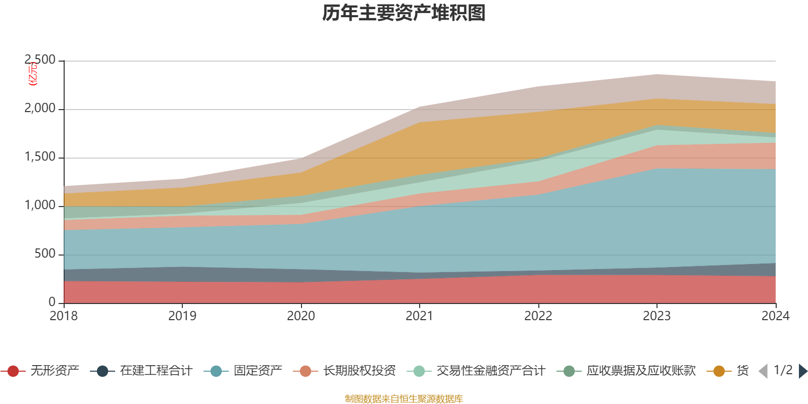 资产重大变化方面,截至2024年末,公司交易性金融资产合计较上年末减少66.3%,占公司总资产比重下降4.43个百分点;在建工程合计较上年末增加75.56%,占公司总资产比重上升2.66个百分点;长期股权投资较上年末增加14.62%,占公司总资产比重上升1.85个百分点;货币资金较上年末增加9.07%,占公司总资产比重上升1.45个百分点。