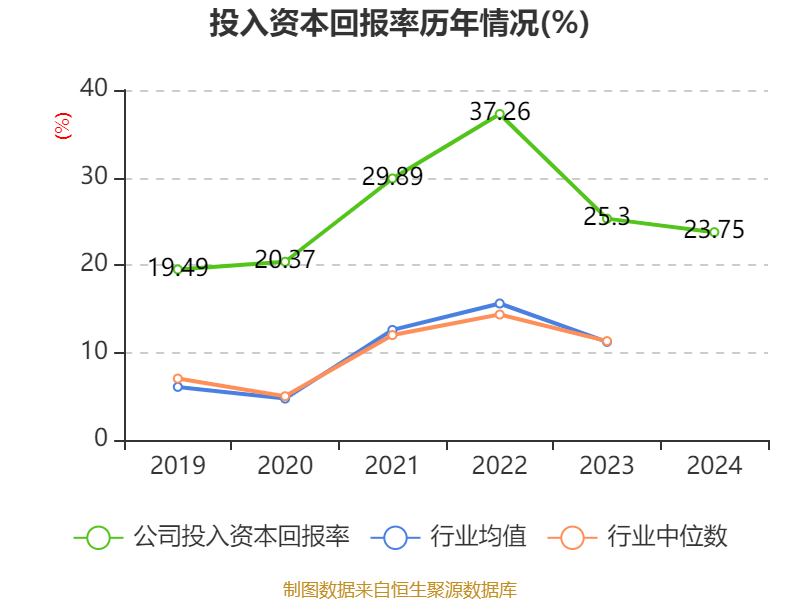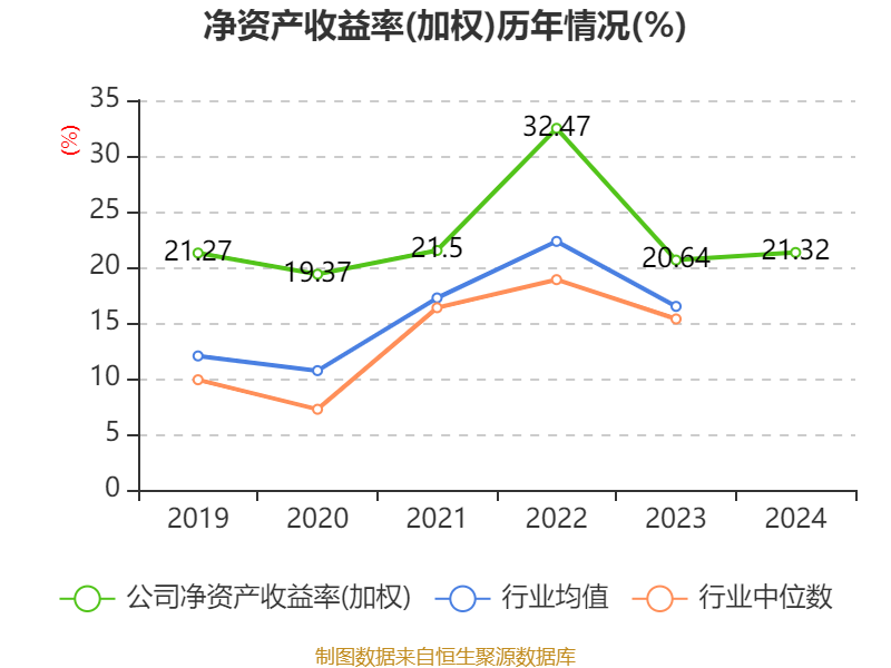 数据显示,2024年公司加权平均净资产收益率为21.32%,较上年同期上升0.68个百分点。公司2024年投入资本回报率为23.75%,较上年同期下降1.55个百分点。