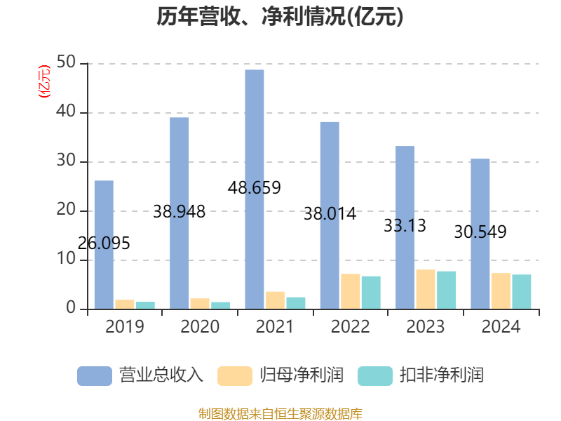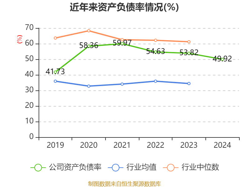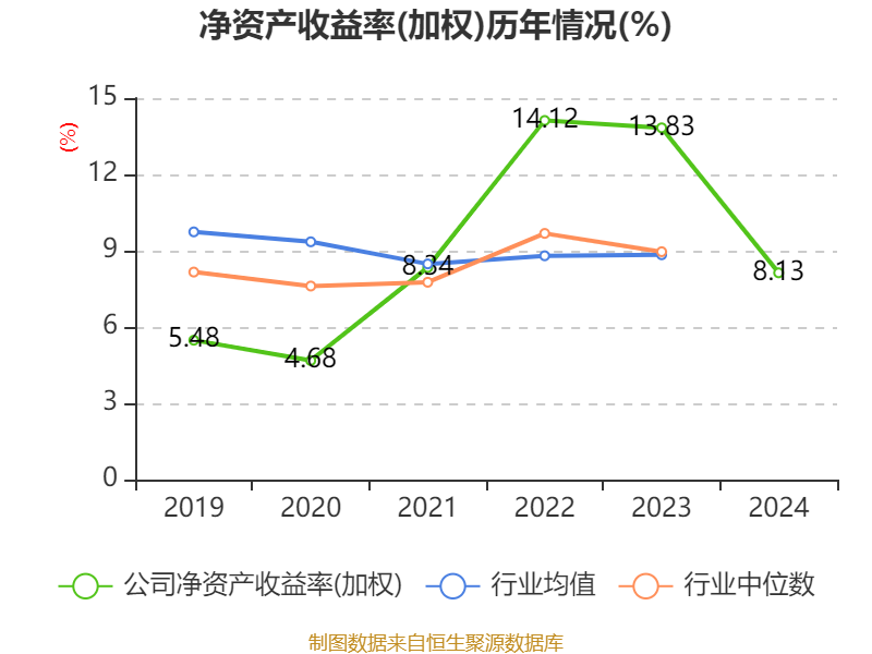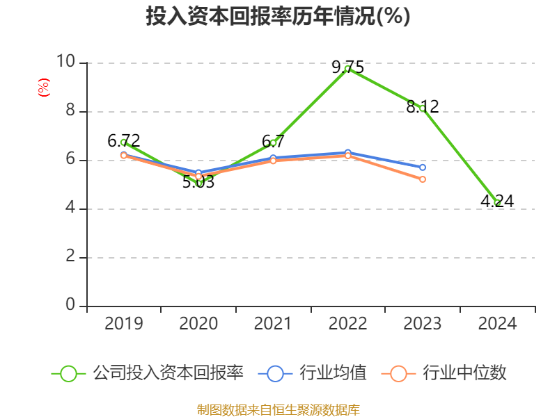 数据显示,2024年公司加权平均净资产收益率为8.13%,较上年同期下降5.7个百分点。公司2024年投入资本回报率为4.24%,较上年同期下降3.88个百分点。