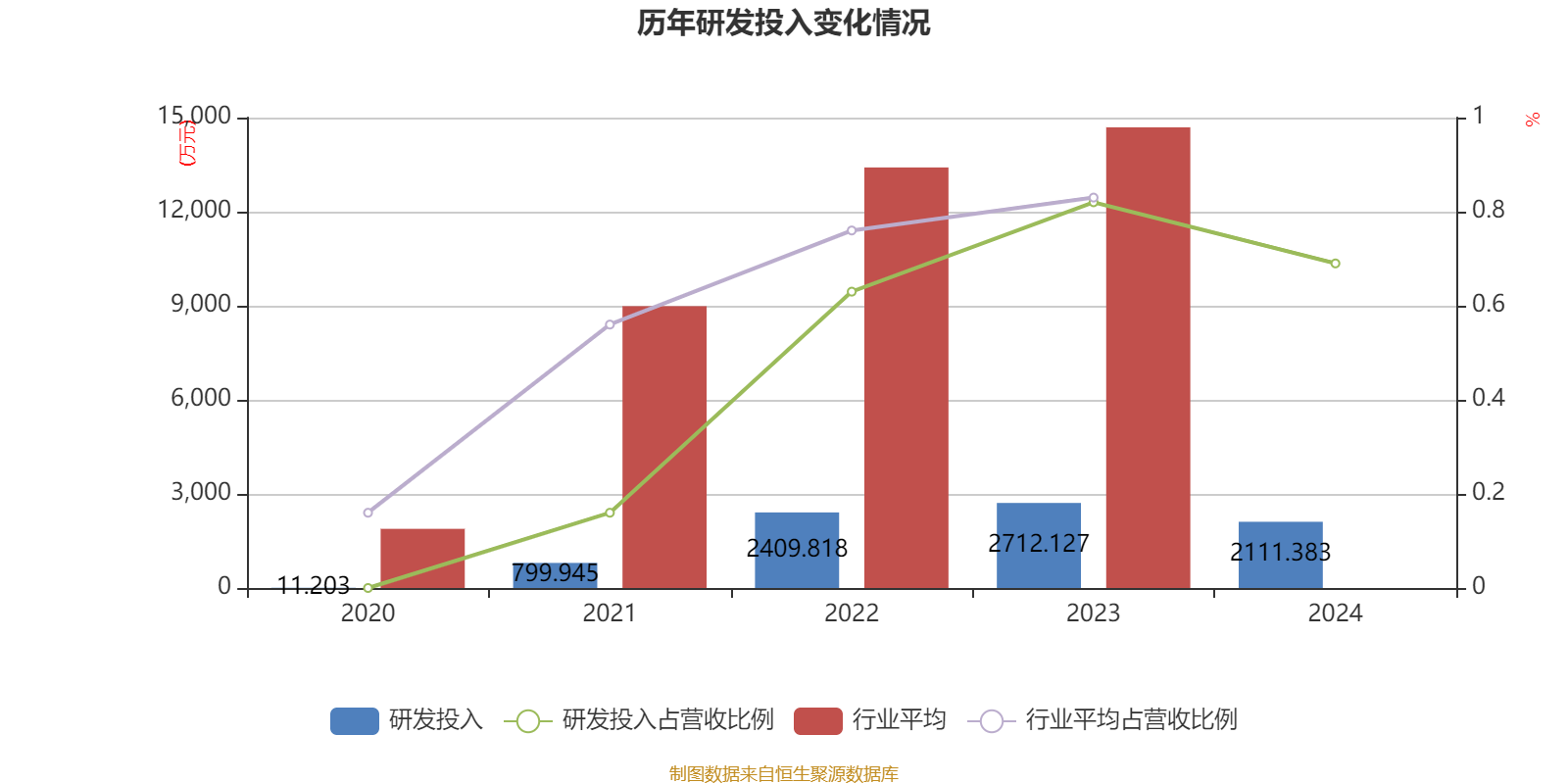 2024年全年,公司研发投入金额为2111.38万元,同比下降22.15%;研发投入占营业收入比例为0.69%,相比上年同期下降0.13个百分点。此外,公司全年研发投入资本化率为0%。