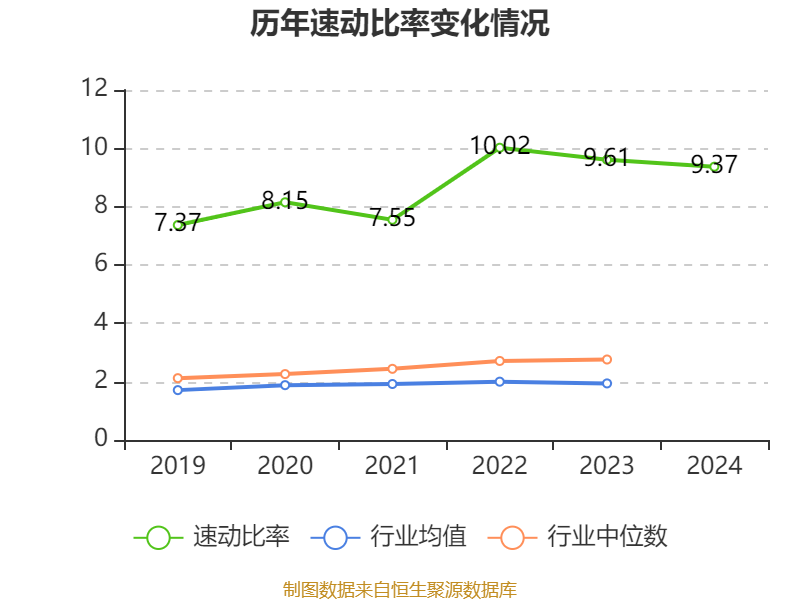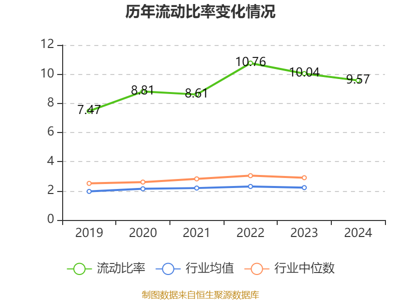 2024年,公司流动比率为9.57,速动比率为9.37。