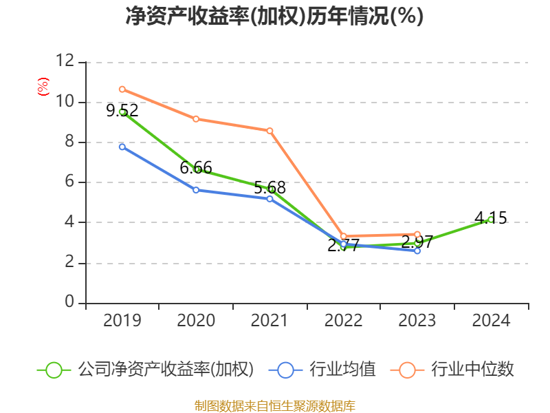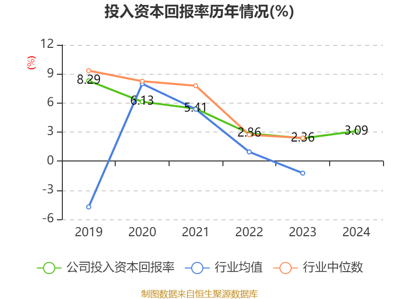 数据显示,2024年公司加权平均净资产收益率为4.15%,较上年同期上升1.18个百分点。公司2024年投入资本回报率为3.09%,较上年同期上升0.73个百分点。