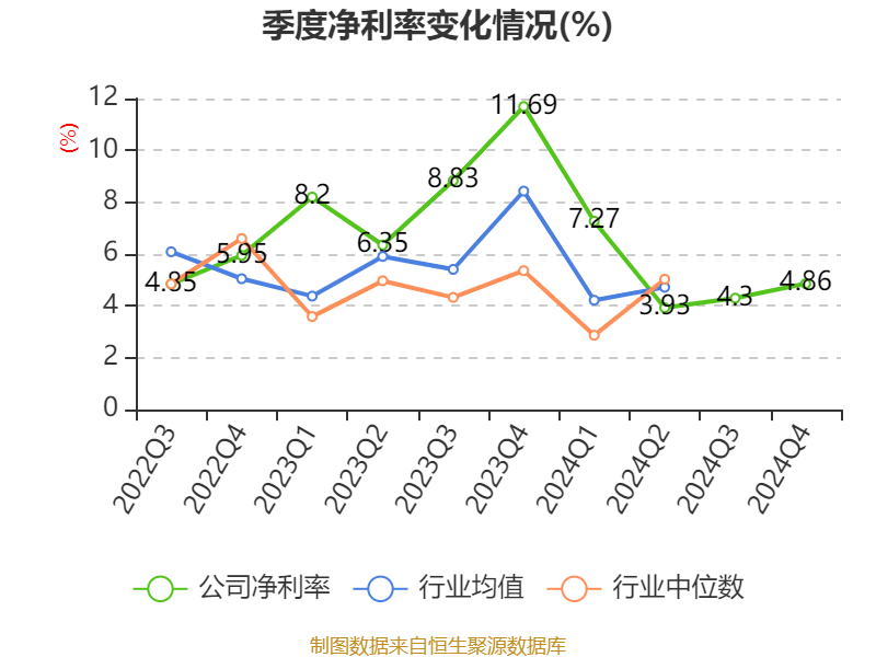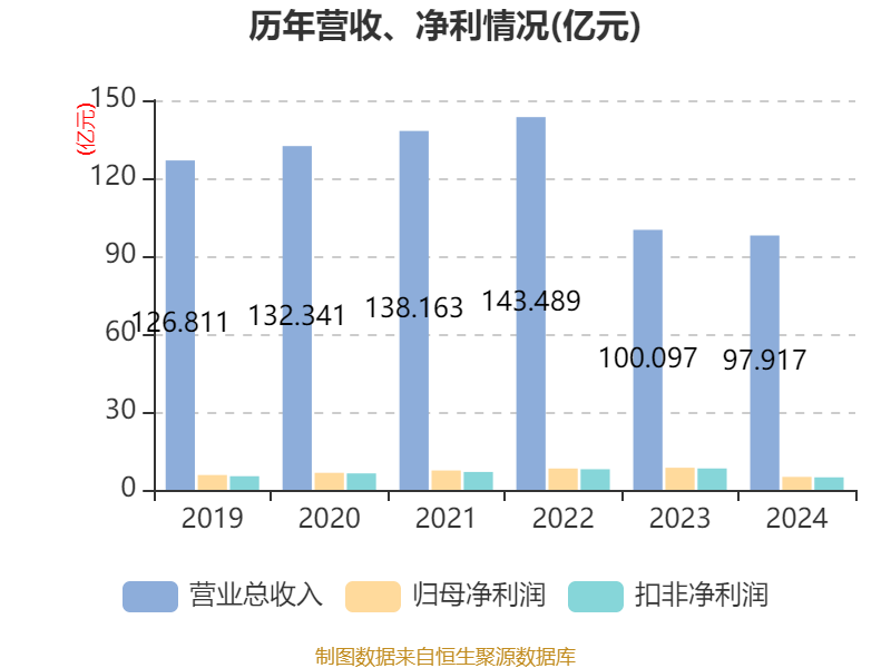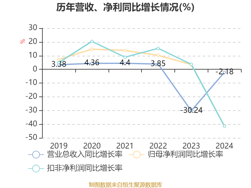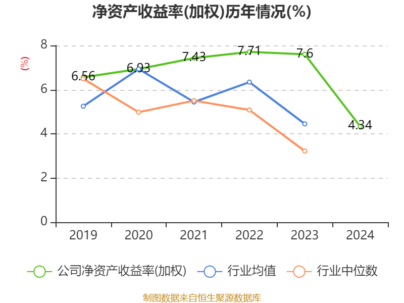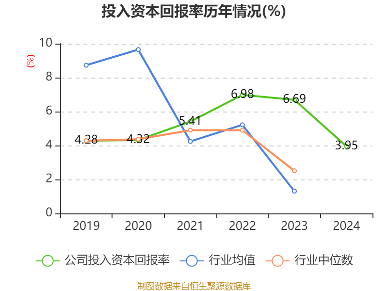 数据显示,2024年公司加权平均净资产收益率为4.34%,较上年同期下降3.26个百分点。公司2024年投入资本回报率为3.95%,较上年同期下降2.74个百分点。