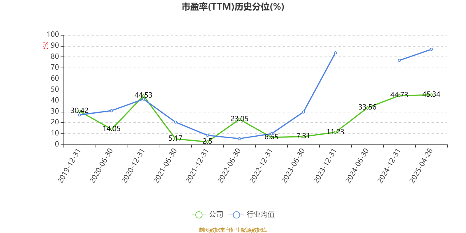 市盈率、市净率为负时,不显示当期分位数,会导致折线图中断。