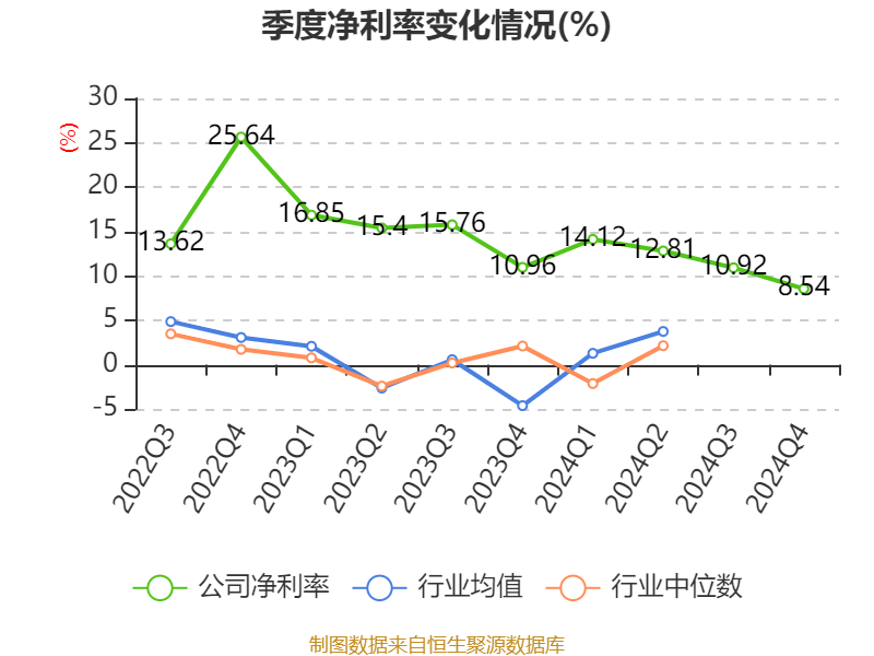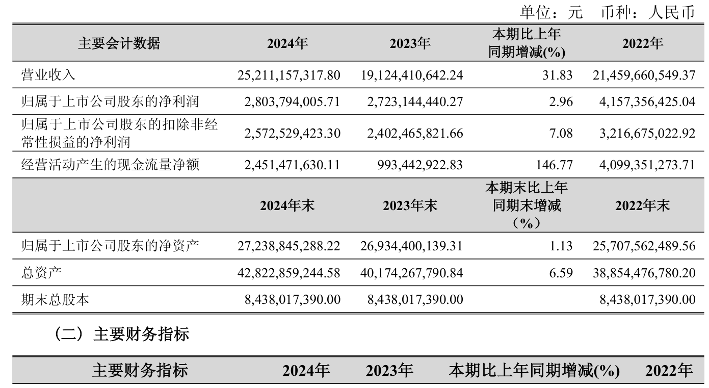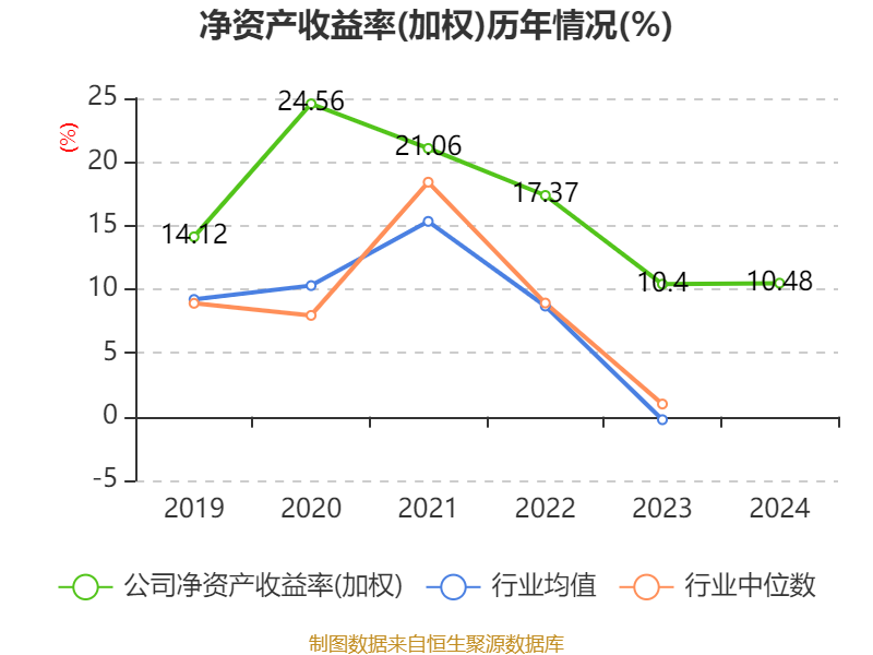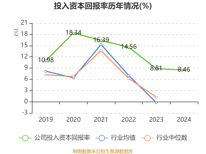 数据显示,2024年公司加权平均净资产收益率为10.48%,较上年同期上升0.08个百分点。公司2024年投入资本回报率为8.46%,较上年同期下降0.35个百分点。
