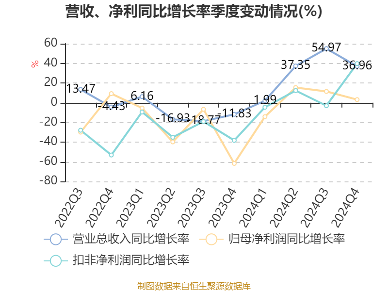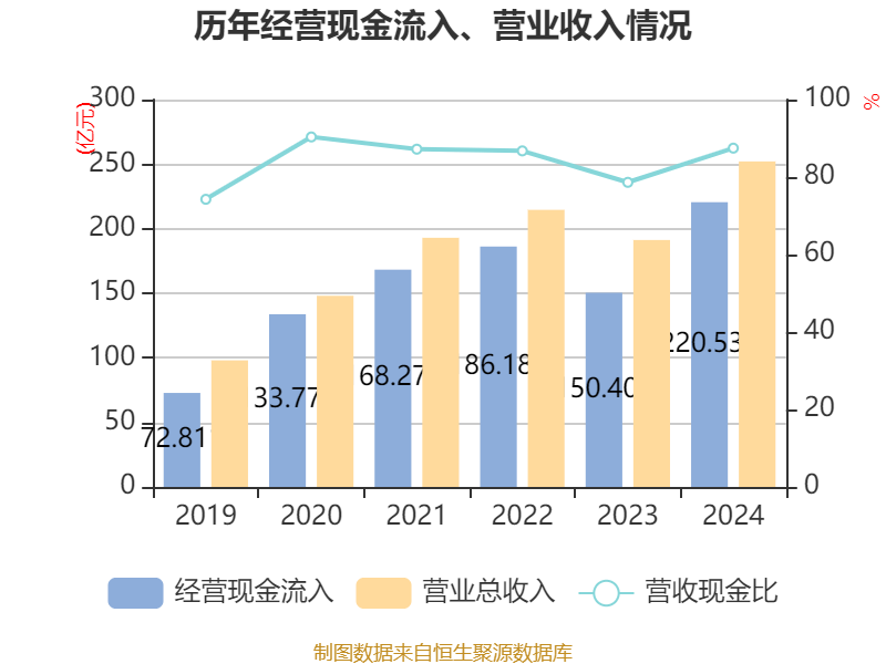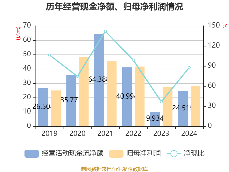 截至2024年,公司经营活动现金流净额为24.51亿元,同比增长146.77%;筹资活动现金流净额4.87亿元,同比增加30.79亿元;投资活动现金流净额-25.32亿元,上年同期为12.04亿元。
