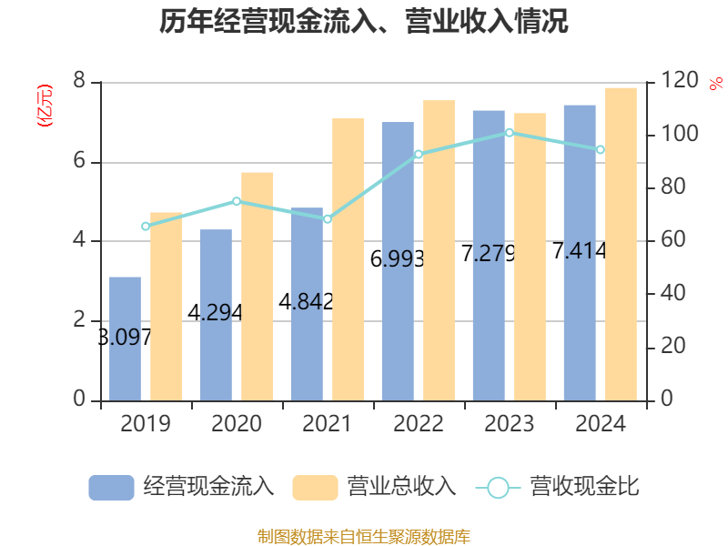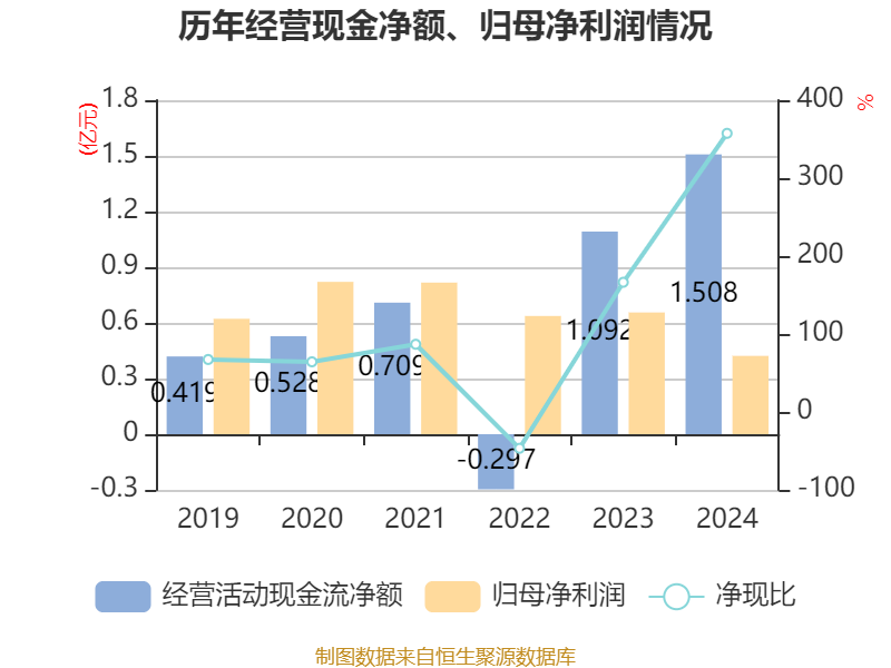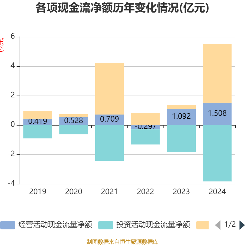 截至2024年,公司经营活动现金流净额为1.51亿元,同比增长38.11%;筹资活动现金流净额4.01亿元,同比增加3.76亿元;投资活动现金流净额-3.84亿元,上年同期为-1.85亿元。