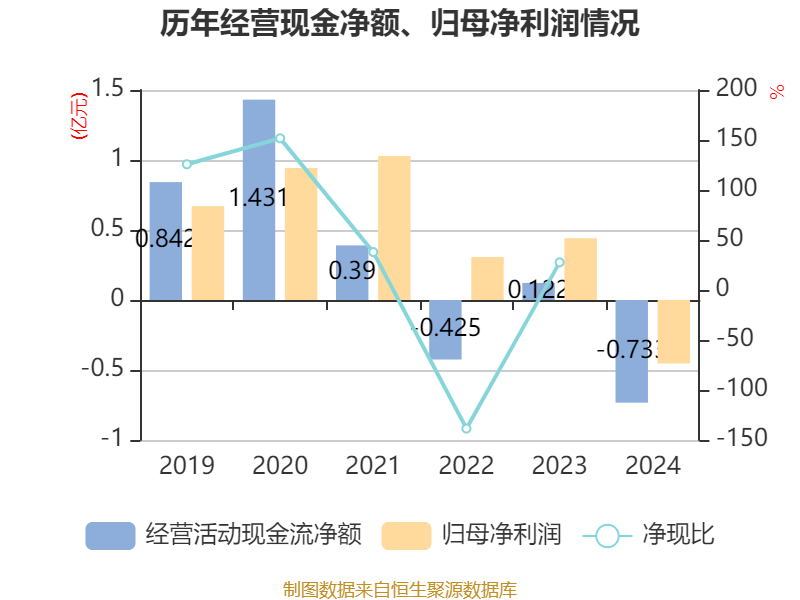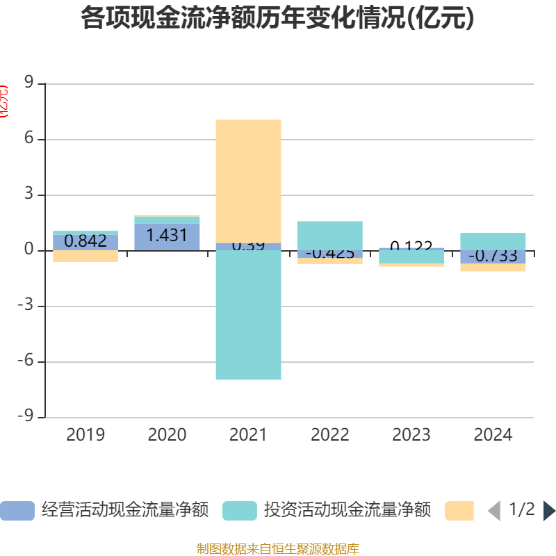 截至2024年,公司经营活动现金流净额为-7331.39万元,同比减少8549.31万元;筹资活动现金流净额-4083.72万元,同比减少2423.76万元;投资活动现金流净额9346.91万元,上年同期为-7147.38万元。