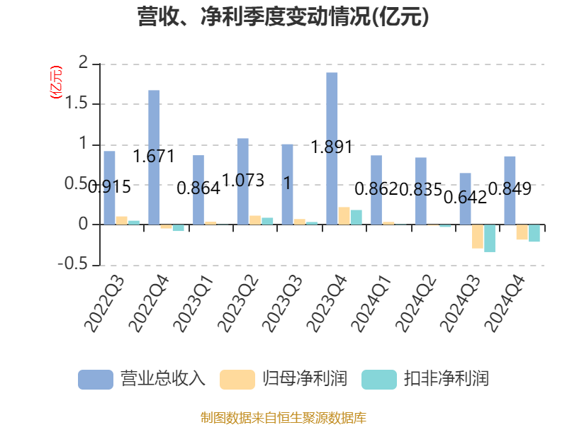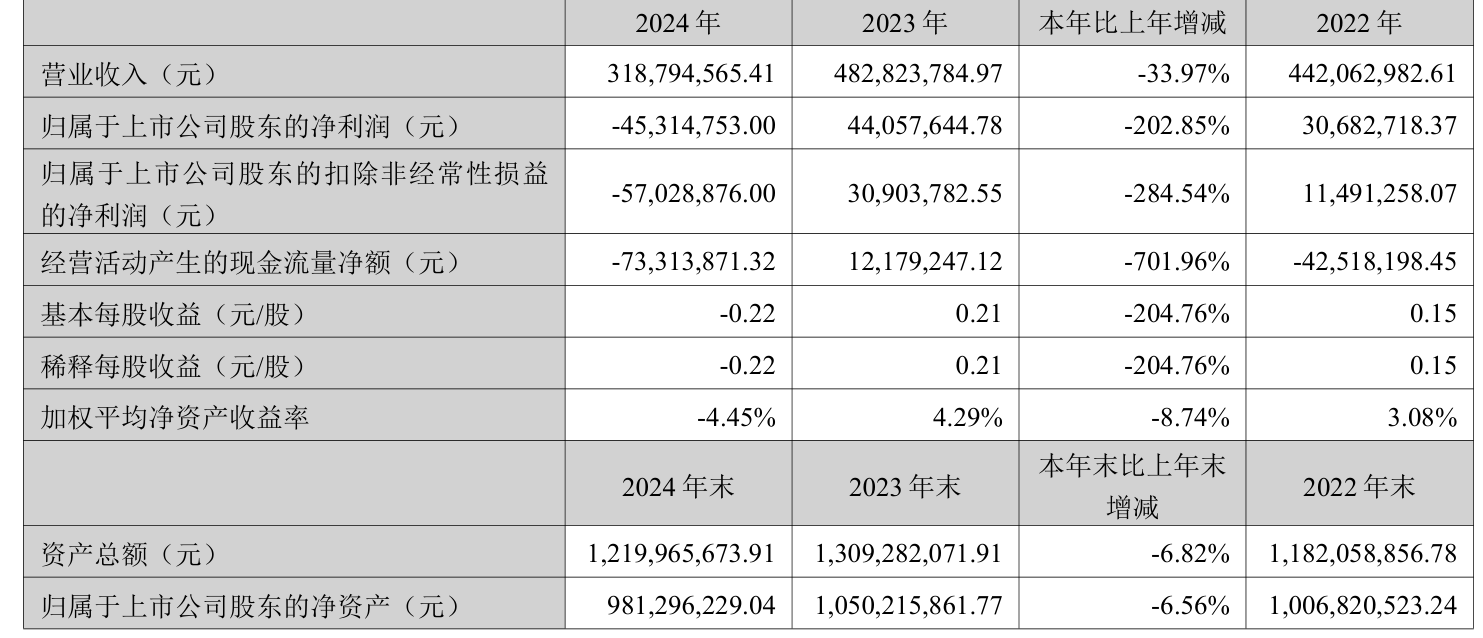 中证智能财讯蕾奥规划(300989)4月28日披露2024年年度报告。2024年,公司实现营业总收入3.19亿元,同比下降33.97%;归母净利润亏损4531.48万元,上年同期盈利4405.76万元;扣非净利润亏损5702.89万元,上年同期盈利3090.38万元;经营活动产生的现金流量净额为-7331.39万元,上年同期为1217.92万元;报告期内,蕾奥规划基本每股收益为-0.22元,加权平均净资产收益率为-4.45%。