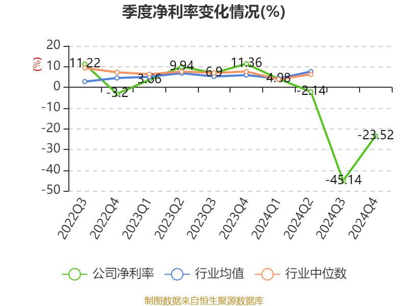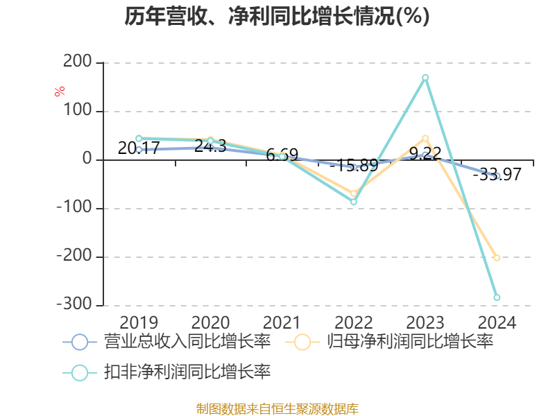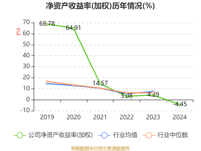 数据显示,2024年公司加权平均净资产收益率为-4.45%,较上年同期下降8.74个百分点。公司2024年投入资本回报率为-3.59%,较上年同期下降7.3个百分点。