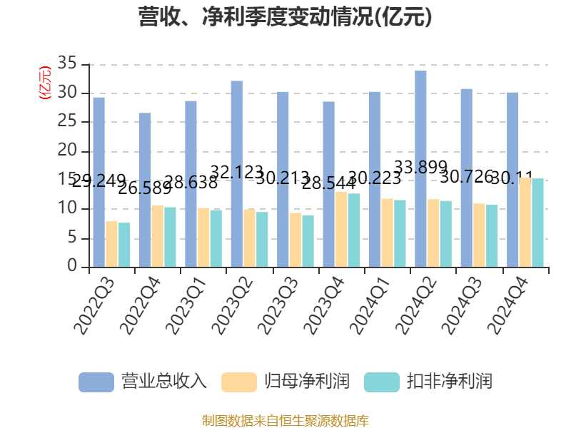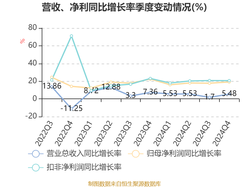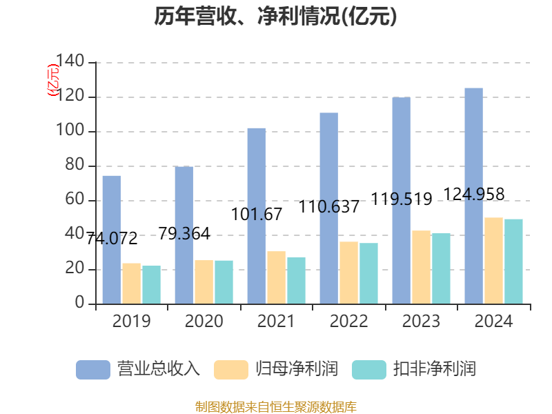 数据显示,2024年公司加权平均净资产收益率为12.52%,较上年同期下降0.38个百分点。