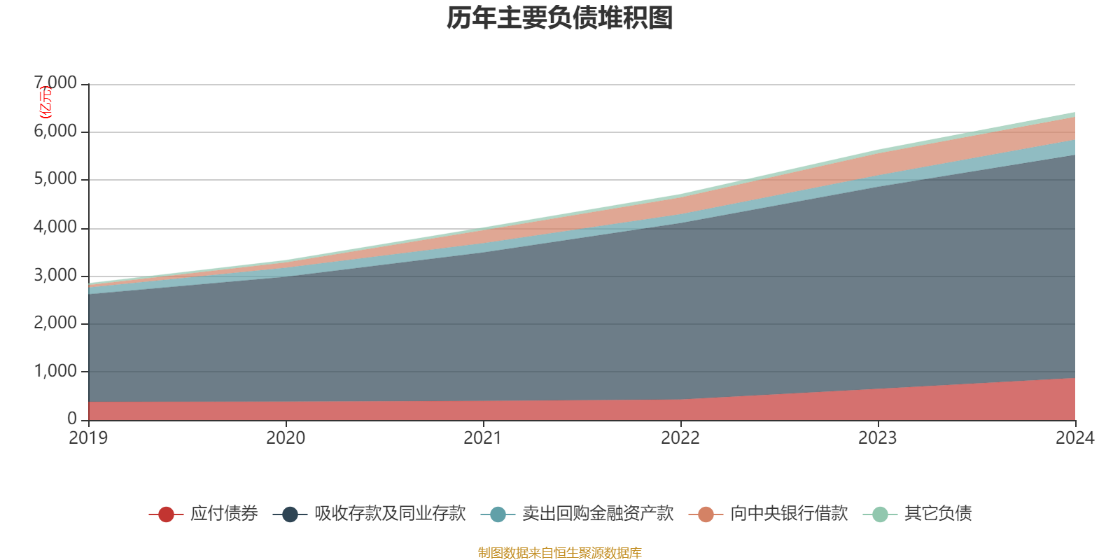 负债重大变化方面,截至2024年末,公司吸收存款及同业存款较上年末增加10.41%,占公司总资产比重下降2.2个百分点;应付债券较上年末增加34.87%,占公司总资产比重上升1.96个百分点;向中央银行借款较上年末增加3.62%,占公司总资产比重下降0.69个百分点;卖出回购金融资产款较上年末增加33.07%,占公司总资产比重上升0.66个百分点。