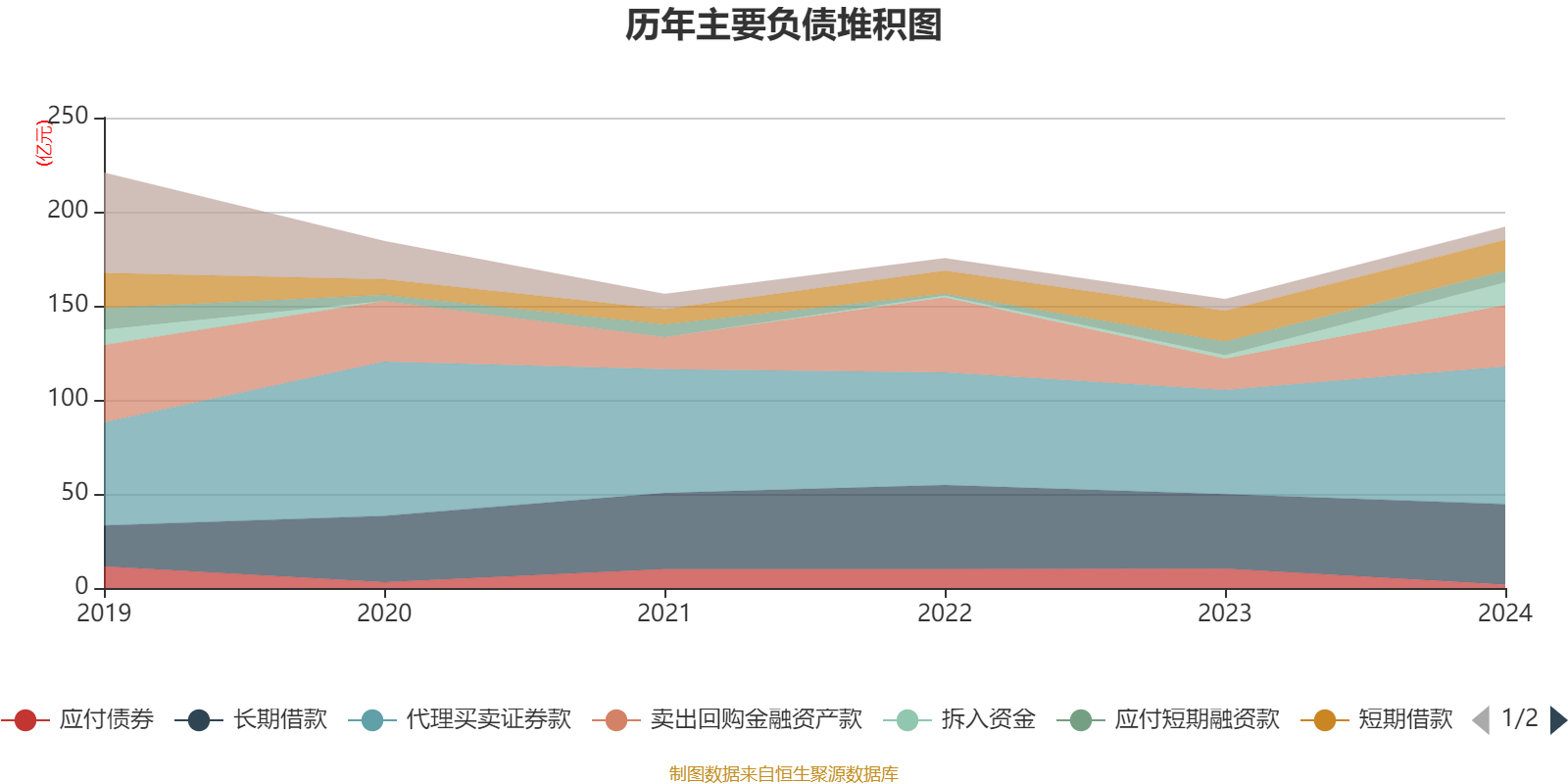 负债重大变化方面,截至2024年末,公司卖出回购金融资产款较上年末增加96.96%,占公司总资产比重上升5.46个百分点;应付债券较上年末减少81.71%,占公司总资产比重下降4.36个百分点;拆入资金较上年末增加534.36%,占公司总资产比重上升4.14个百分点;代理买卖证券款较上年末增加31.94%,占公司总资产比重上升3.03个百分点。