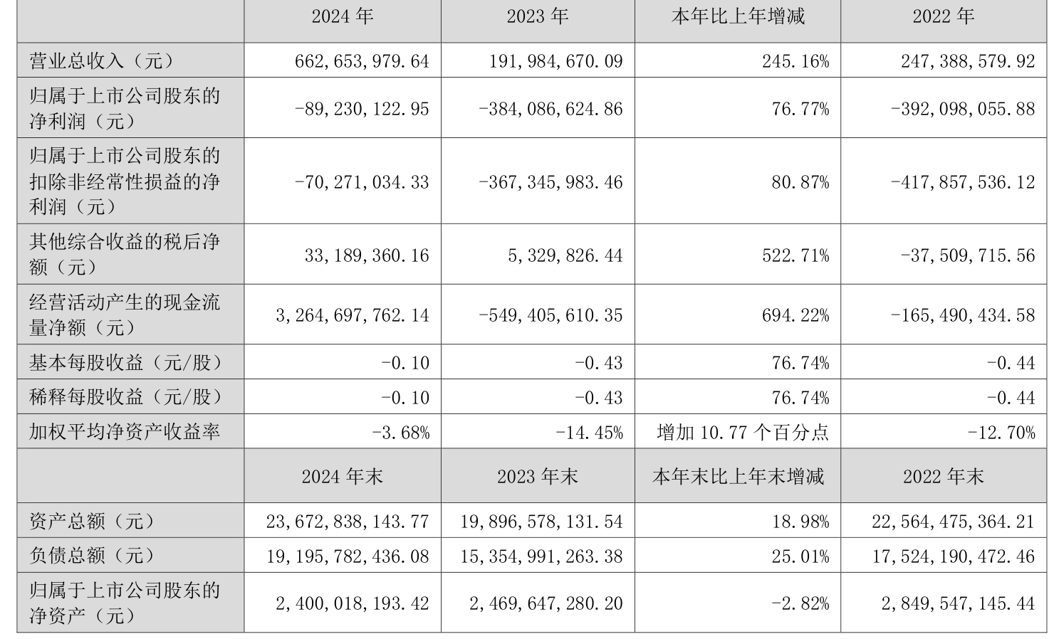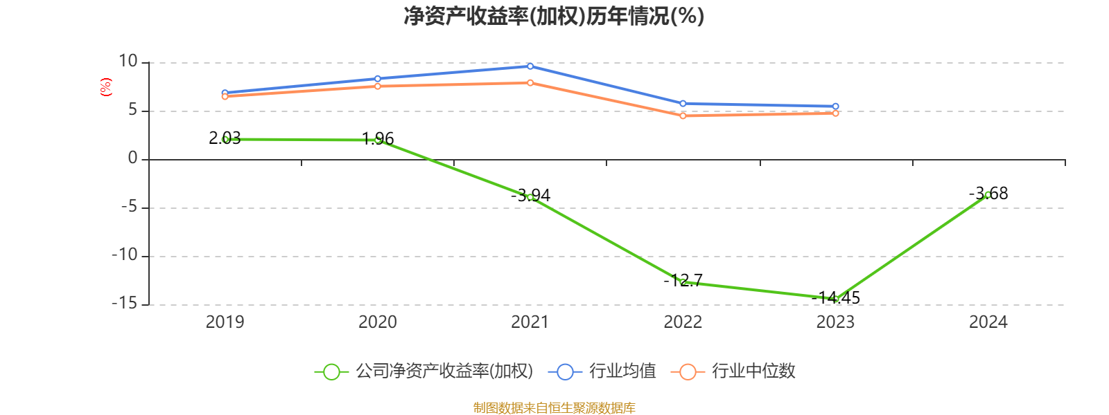 数据显示,2024年公司加权平均净资产收益率为-3.68%,较上年同期上升10.77个百分点。