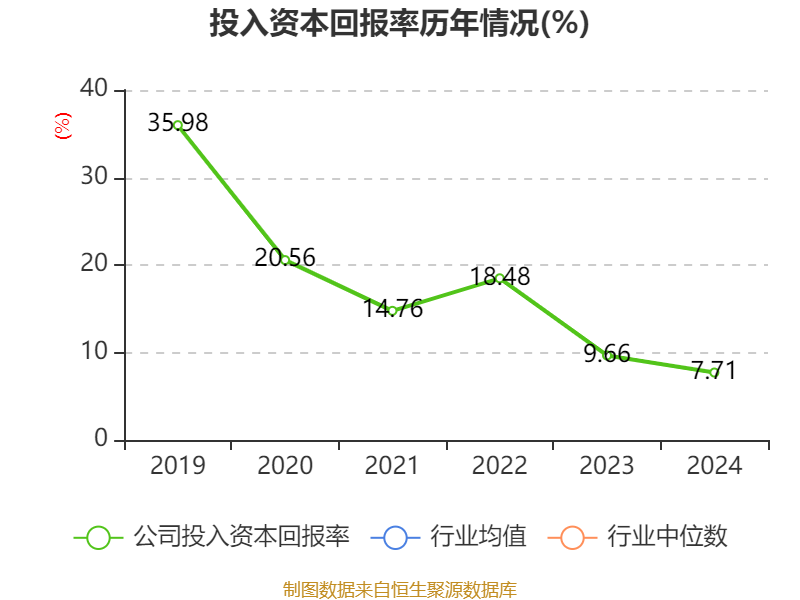 数据显示,2024年公司加权平均净资产收益率为9.21%,较上年同期下降4.24个百分点。公司2024年投入资本回报率为7.71%,较上年同期下降1.95个百分点。