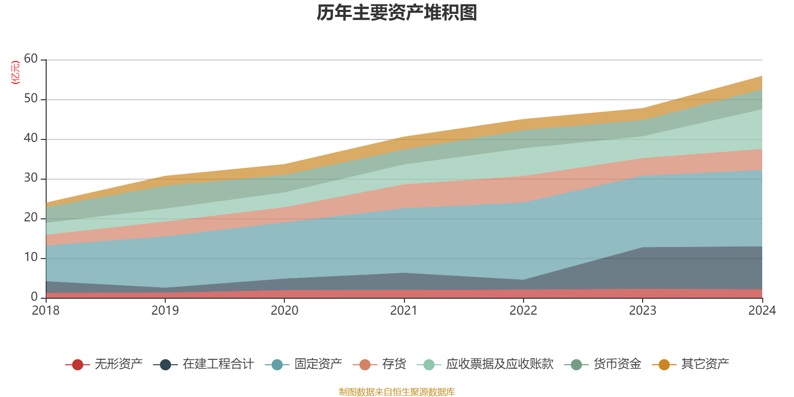 资产重大变化方面,截至2024年末,公司应收票据及应收账款较上年末增加82.02%,占公司总资产比重上升6.39个百分点;固定资产较上年末增加6.96%,占公司总资产比重下降3.26个百分点;在建工程合计较上年末增加3%,占公司总资产比重下降2.64个百分点;无形资产较上年末减少4.26%,占公司总资产比重下降0.85个百分点。