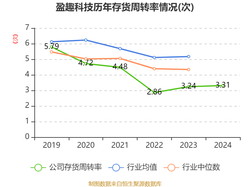 从存货变动来看,截至2024年末,公司存货账面价值为7.58亿元,占净资产的16.33%,较上年末减少3023.36万元。其中,存货跌价准备为1.29亿元,计提比例为14.57%。