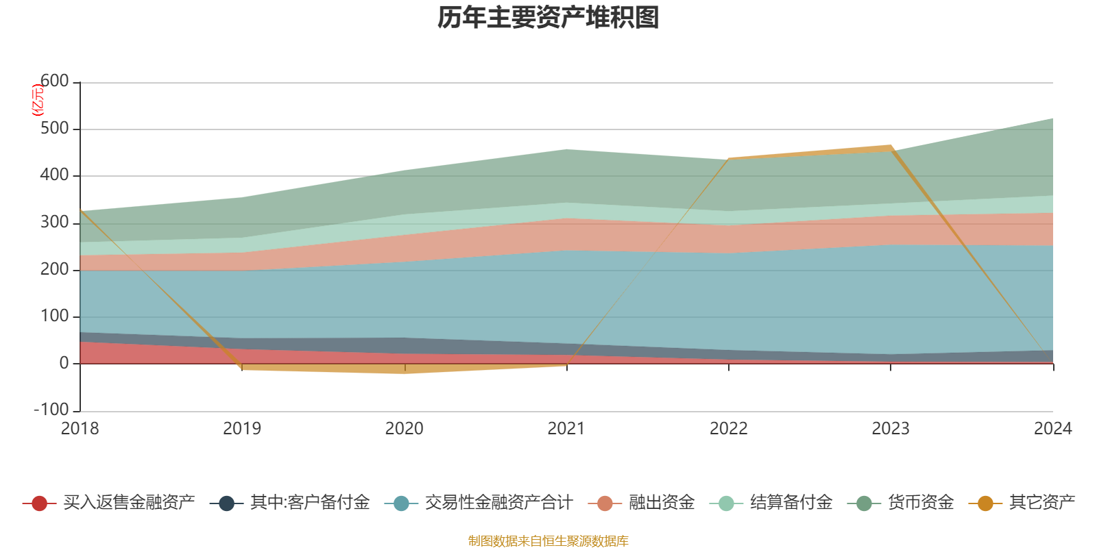 资产重大变化方面,截至2024年末,公司货币资金较上年末增加48.79%,占公司总资产比重上升7.8个百分点;交易性金融资产合计较上年末减少4.42%,占公司总资产比重下降7.27个百分点;结算备付金较上年末增加42.59%,占公司总资产比重上升1.52个百分点;其中:客户备付金较上年末增加58.24%,占公司总资产比重上升1.41个百分点。