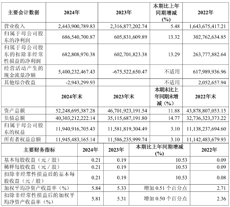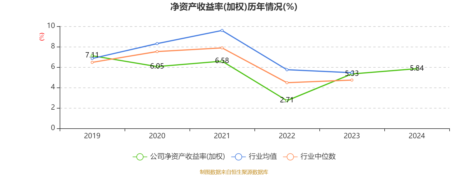 数据显示,2024年公司加权平均净资产收益率为5.84%,较上年同期上升0.51个百分点。