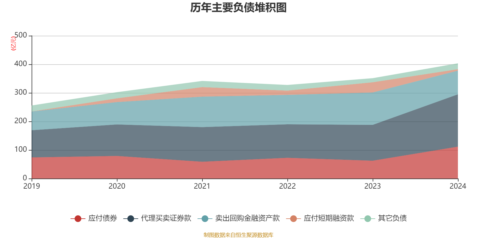 负债重大变化方面,截至2024年末,公司卖出回购金融资产款较上年末减少26.92%,占公司总资产比重下降8.44个百分点;代理买卖证券款较上年末增加46.23%,占公司总资产比重上升8.24个百分点;应付债券较上年末增加79.2%,占公司总资产比重上升8个百分点;应付短期融资款较上年末减少85.84%,占公司总资产比重下降6.64个百分点。