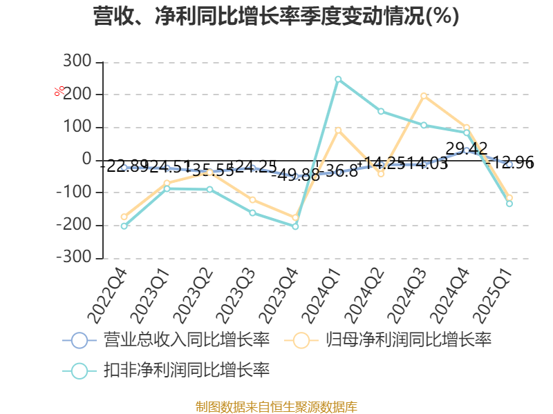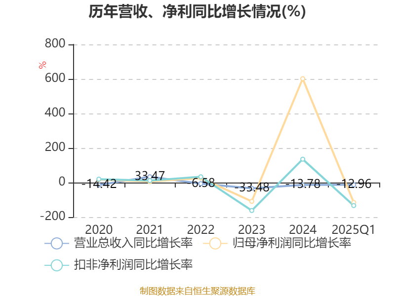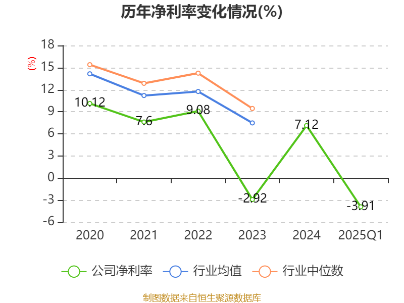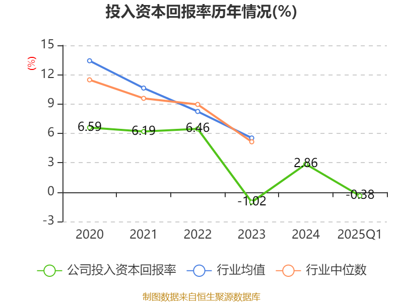 盈利能力方面, 2025年一季度公司加权平均净资产收益率为-0.22%,同比下降1.66个百分点。公司2025年第一季度投入资本回报率为-0.38%,较上年同期下降1.73个百分点。