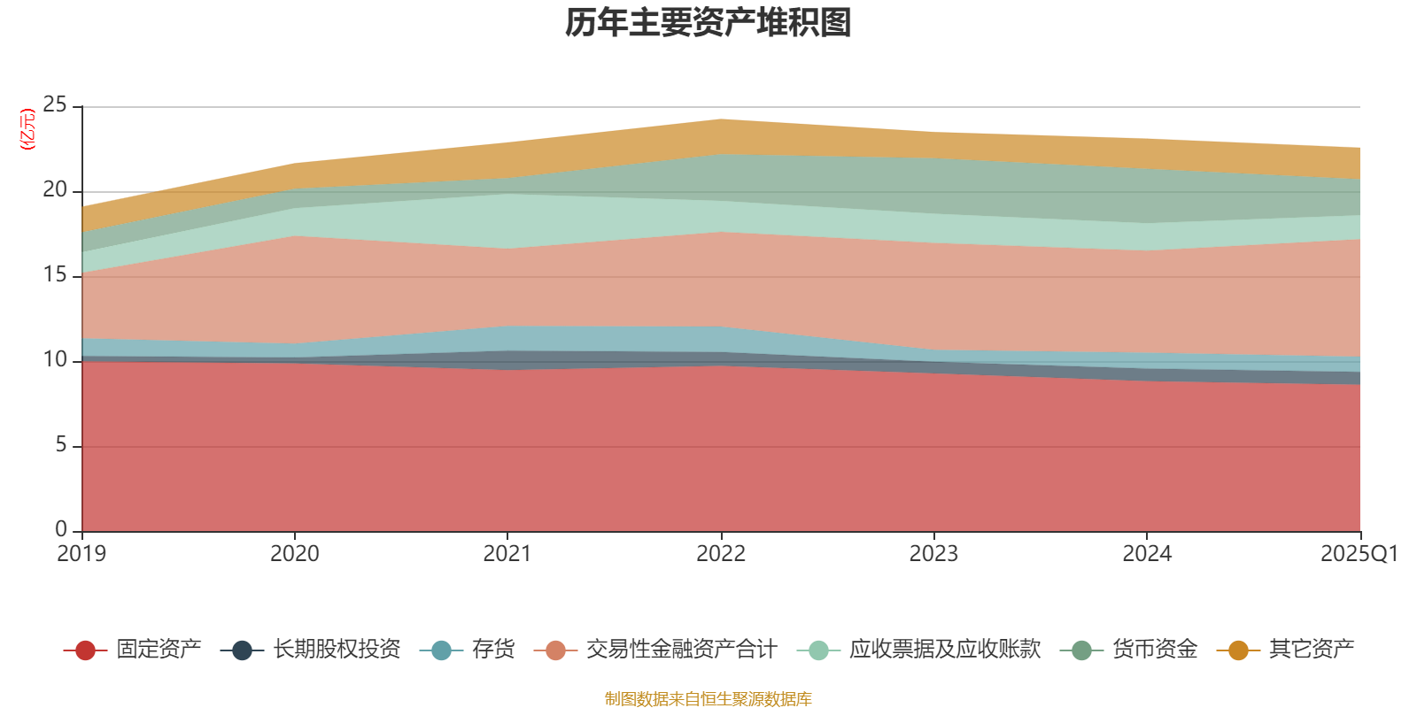 资产重大变化方面,截至2025年一季度末,公司交易性金融资产合计较上年末增加15.08%,占公司总资产比重上升4.62个百分点;货币资金较上年末减少33.94%,占公司总资产比重下降4.5个百分点;应收票据及应收账款较上年末减少12.18%,占公司总资产比重下降0.7个百分点;在建工程合计较上年末增加15.87%,占公司总资产比重上升0.53个百分点。