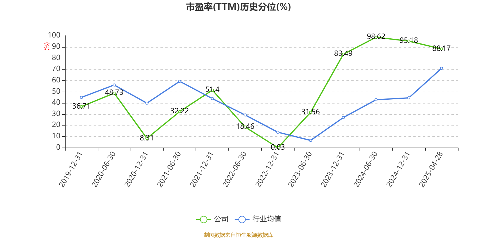 市盈率、市净率为负时,不显示当期分位数,会导致折线图中断。