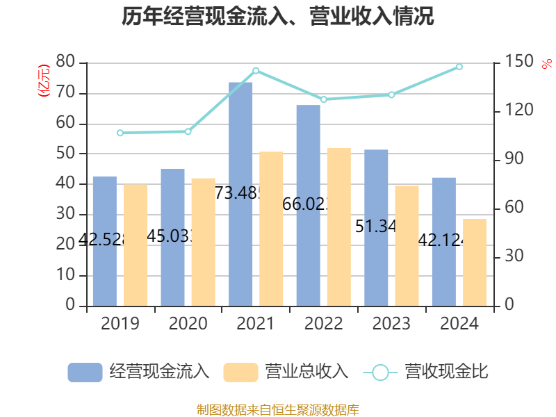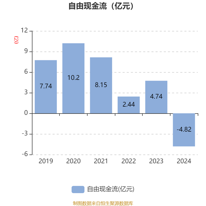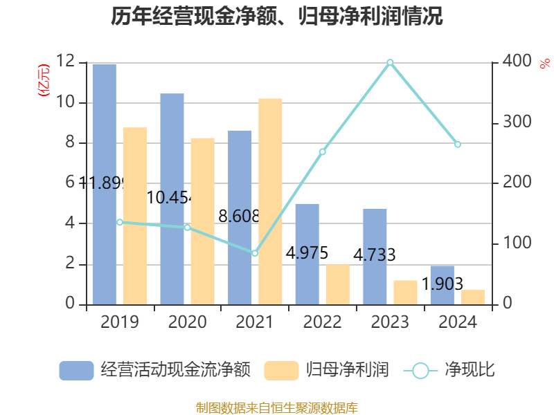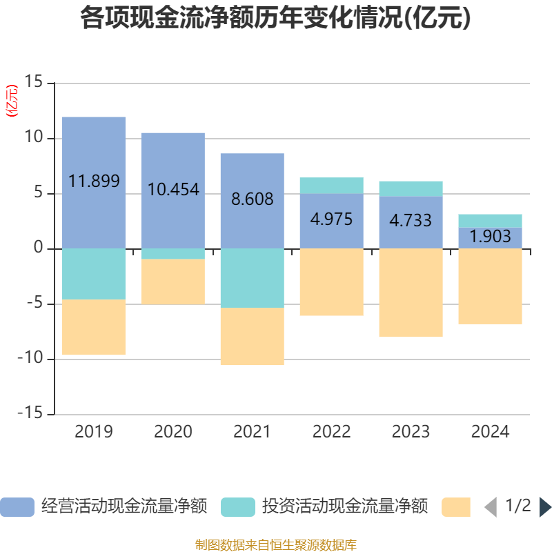 截至2024年,公司经营活动现金流净额为1.9亿元,同比下降59.79%;筹资活动现金流净额-6.87亿元,同比增加1.13亿元;投资活动现金流净额1.18亿元,上年同期为1.34亿元。