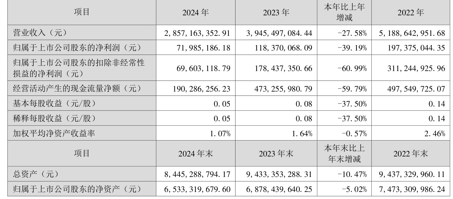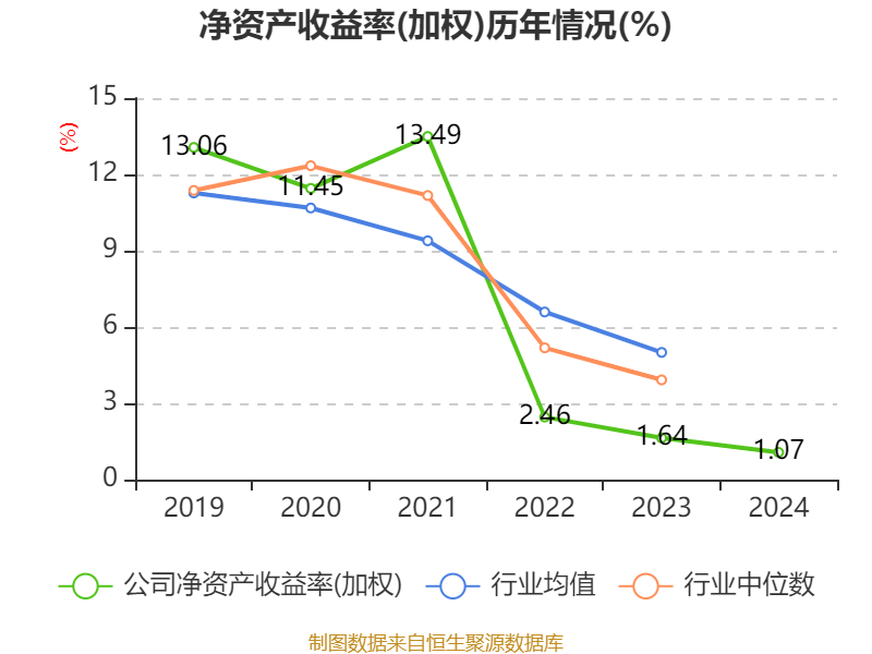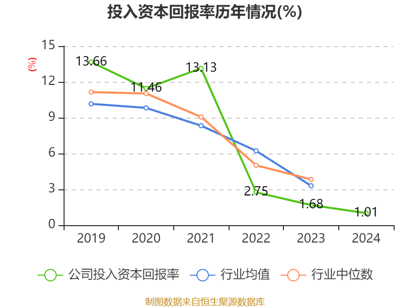 数据显示,2024年公司加权平均净资产收益率为1.07%,较上年同期下降0.57个百分点。公司2024年投入资本回报率为1.01%,较上年同期下降0.67个百分点。