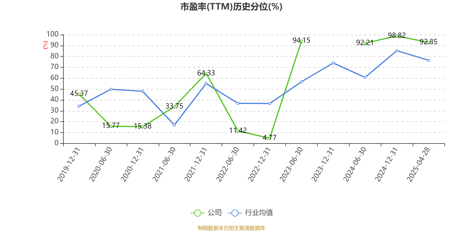 市盈率、市净率为负时,不显示当期分位数,会导致折线图中断。