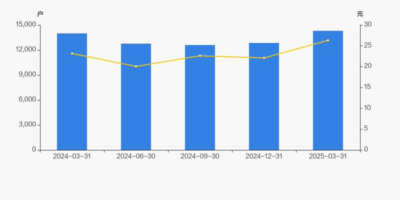 2024年3月31日至今,公司股东户数有所增长,区间涨幅为2.18%。2024年3月31日至2025年3月31日区间股价上涨13.58%。