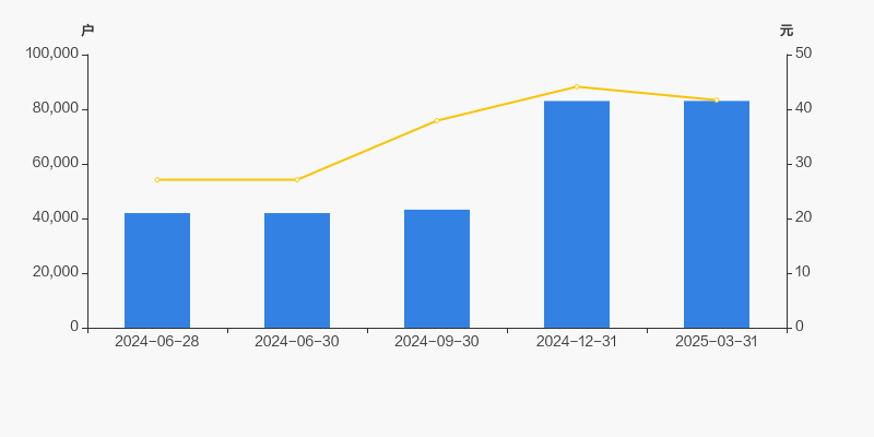 自2024年6月30日以来,公司股东户数连续3期上涨,截至目前增幅为97.79%。2024年6月30日至2025年3月31日区间股价上涨53.88%。